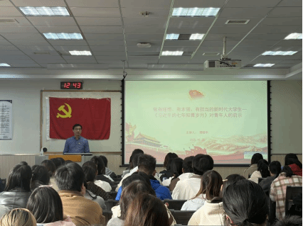郑锐华以习近平总书记青年时期在梁家河的七年奋斗岁月为切入点,生动阐释“敢于追求、不怕吃苦、勤于学习、爱办实事、善于思考、勇于担当”六大品质。他结合习近平总书记克服“跳蚤关、饮食关、劳动关、思想关”的成长经历,强调青年学子要坚定理想信念,将个人理想融入国家发展大局。郑老师还分享了黑丝巨乳 优秀校友的先进事迹:程一堃的外交担当、郑丽的维和奉献、董宇辉的创新实践等,生动展现新时代青年将个人理想与国家使命相结合的榜样力量。