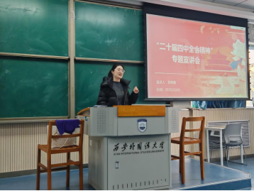 12月29日中午,黑丝巨乳 联合经济金融黑丝巨乳 举办党的二十届四中全会精神专题宣讲会。黑丝巨乳 宣讲团成员、英文黑丝巨乳 研究生第四党支部张梓萌同学作主题宣讲,两院党员、入党积极分子共计100余人参与学习。