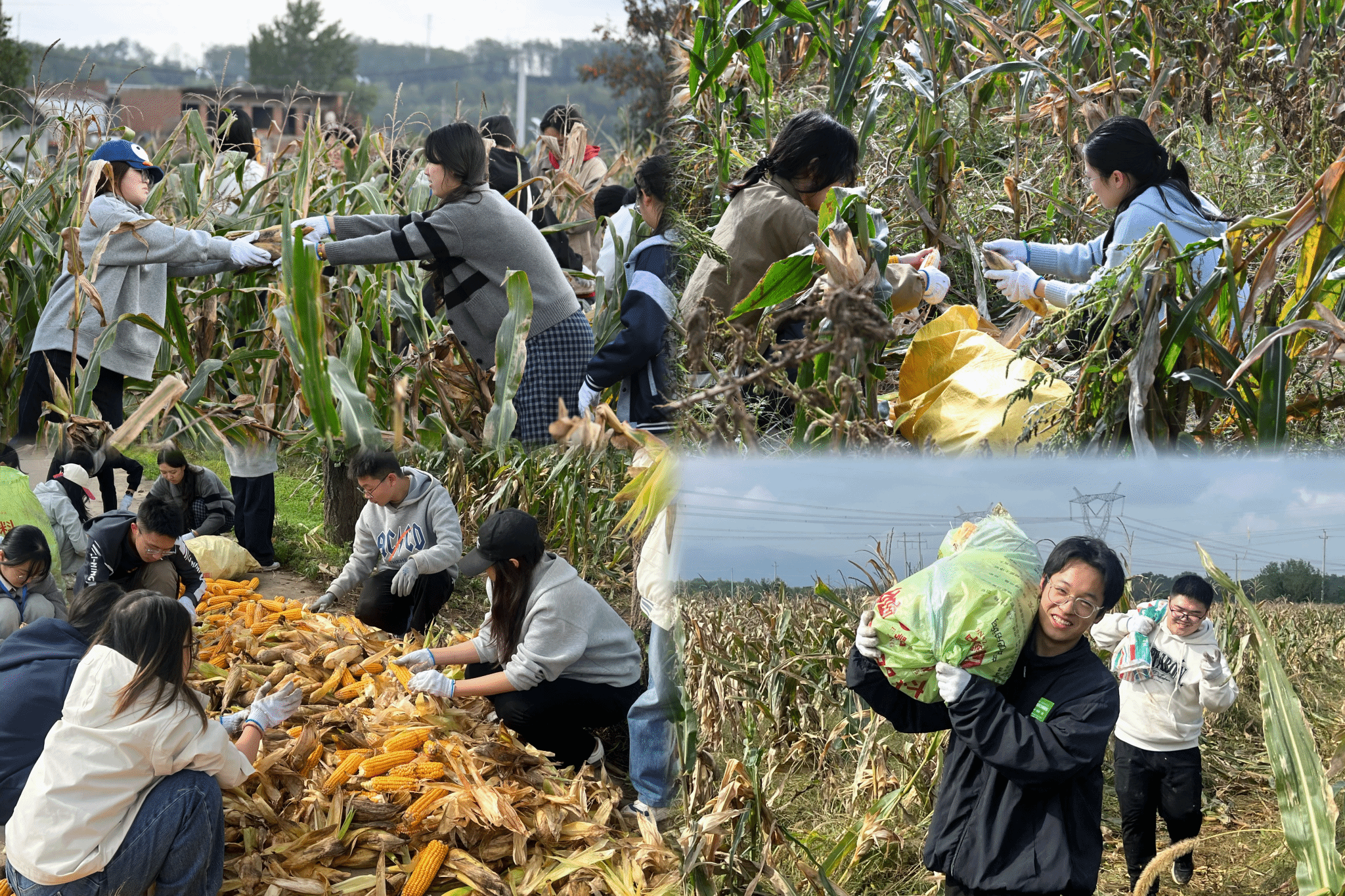 在工作人员的指导下,师生快速分组、配齐装备,有序进入玉米种植区,现场各小组协同高效。虽雨后田间泥泞,师生仍坚守“颗粒归仓”准则,让劳动教育的价值在实干中彰显。