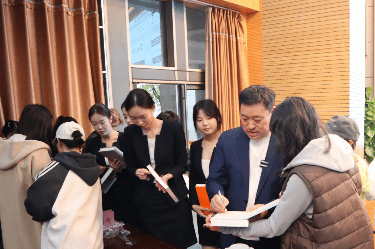 问答环节,同学们争相提问,气氛活跃。针对如何建立高效的沟通与决策机制、怎样撰写商业计划书等问题,李博士做了耐心地解答并为师生赠送了编撰著作。