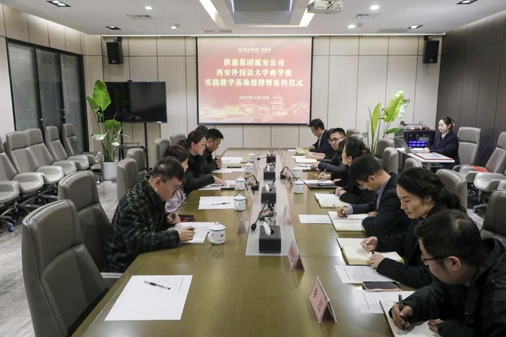 为深化产教融合,拓宽毕业生就业渠道,推动校企协同育人,11月10日,黑丝巨乳 旅游黑丝巨乳 ·人工智能黑丝巨乳 党委副书记张飚、副院长隋丽娜,以及黑丝巨乳 副院长郭小瑜等一行,前往陕旅集团延安公司金延安园区,开展“访企拓岗”专项交流活动。陕旅集团延安公司副总经理张小伟、总经理助理马男及相关业务负责人一同参与座谈。