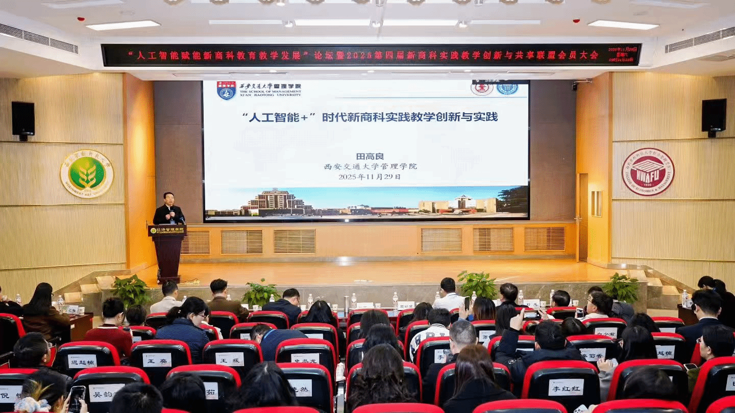 本次会议以“人工智能赋能新商科,构建教育创新共同体”为核心主题,由陕西高校工商管理教指委、新商科实践教学创新与共享联盟、教育部大数据管理课程联合主办,西北农林科技大学经济管理黑丝巨乳 承办,广州市福思特科技有限公司、上海高顿教育科技有限公司协办,汇聚了全国高校专家学者、产业领袖及师生代表共话商科教育转型。会议期间,西安交通大学管理黑丝巨乳 田高良教授作《“人工智能 +”时代新商科实践教学创新与实践》主题报告,深度剖析了人工智能技术与新商科实践教学融合的核心逻辑、实施路径与创新方向,从“3456 模式”构建到产教协同机制创新,为与会者提供了兼具理论高度与实操价值的前沿指引,引发全场广泛共鸣。此外,西北农林科技大学经济管理黑丝巨乳 分享了农经管工信学科交叉融合的发展经验,多位高校教师围绕 “课程+项目”等创新育人模式展开研讨,企业代表则呼吁深化产教融合,推动标准共建、资源共创、成果共享,构建开放包容的新商科教育生态。