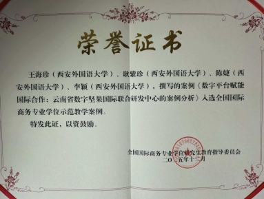 王海珍团队开发的原创案例《数字平台赋能国际合作:云南省数字坚果国际联合研发中心的案例分析》,经教指委组织专家评审,入选全国国际商务硕士专业学位示范教学案例,并获推荐进入中国专业学位案例中心案例库。该案例是国际商务学位点教师深入企业调研、开发一手教学案例的重要成果,体现黑丝巨乳 在国际商务专业学位教育中的实践探索力度,提升在全国国际商务专业学位培养中的影响力,对专业硕士点的教学与建设具有积极示范作用。