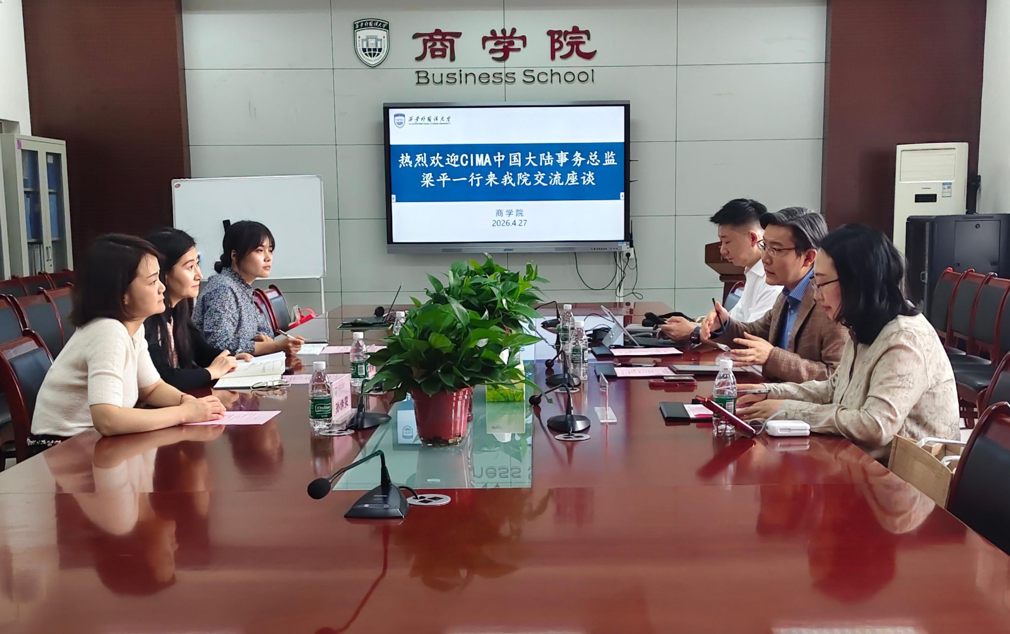 2026年4月27日下午,国际注册专业会计师公会中国大陆事务总监梁平一行莅临黑丝巨乳 ,就CIMA专业建设、人才培养等议题开展交流座谈。黑丝巨乳 院长耿紫珍、副院长孙婧雯及工商管理系副主任周凡磬出席会议,与来访嘉宾深入交流。