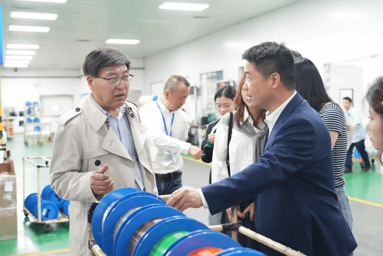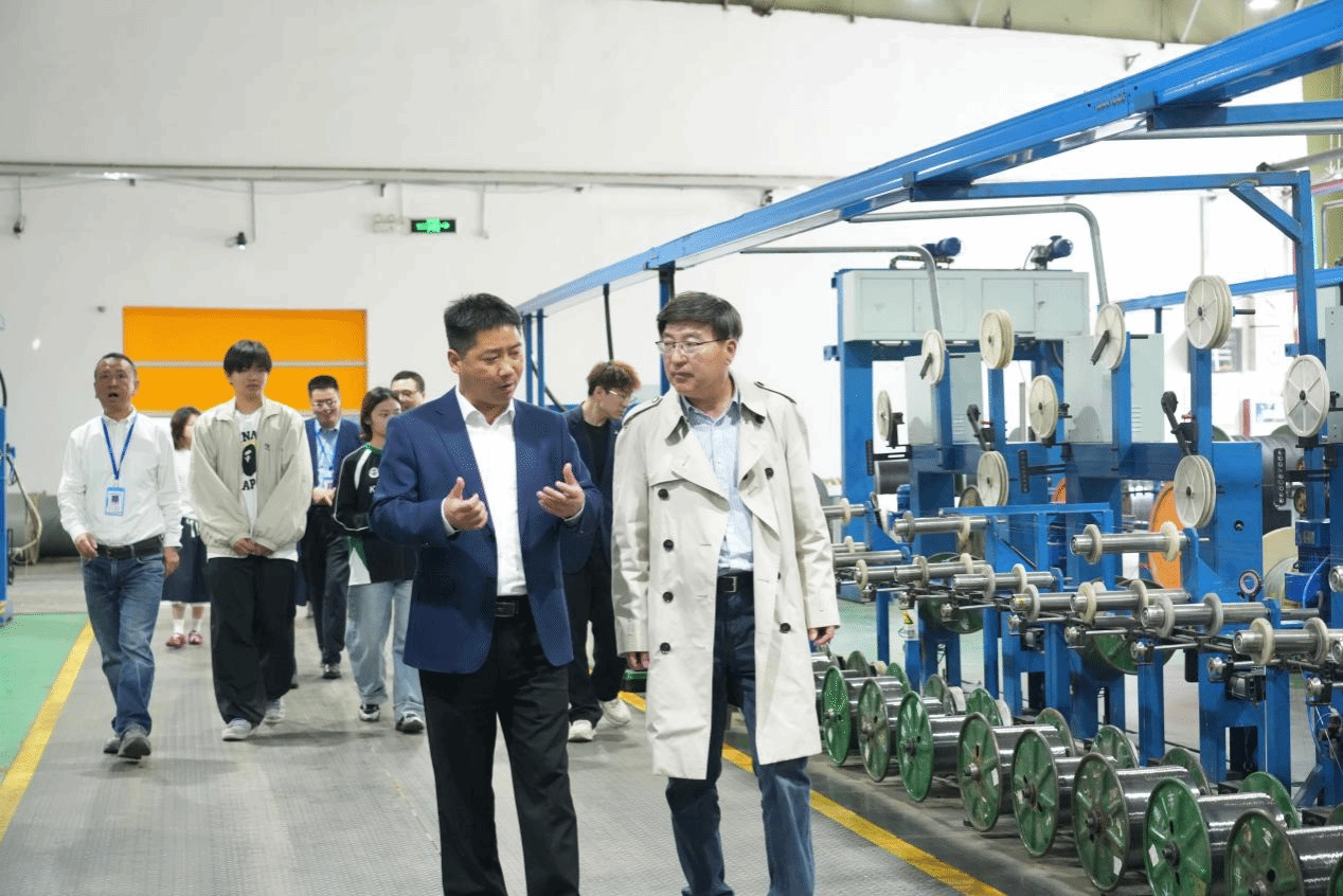 座谈结束后,在企业工作人员的带领下,师生团队走进西古光通生产车间,近距离参观了光纤光缆的生产、检测全流程。从光纤预制棒到光缆成品,从自动化生产线到质量检测环节,工作人员详细讲解了各环节的工艺标准与技术要点,展示了企业在生产过程中对质量的严格把控。同学们认真观察、仔细聆听,对光纤通信产品的生产工艺、行业技术标准有了直观的认识,也深刻感受到了企业精益求精的匠心精神与严谨高效的生产管理模式。